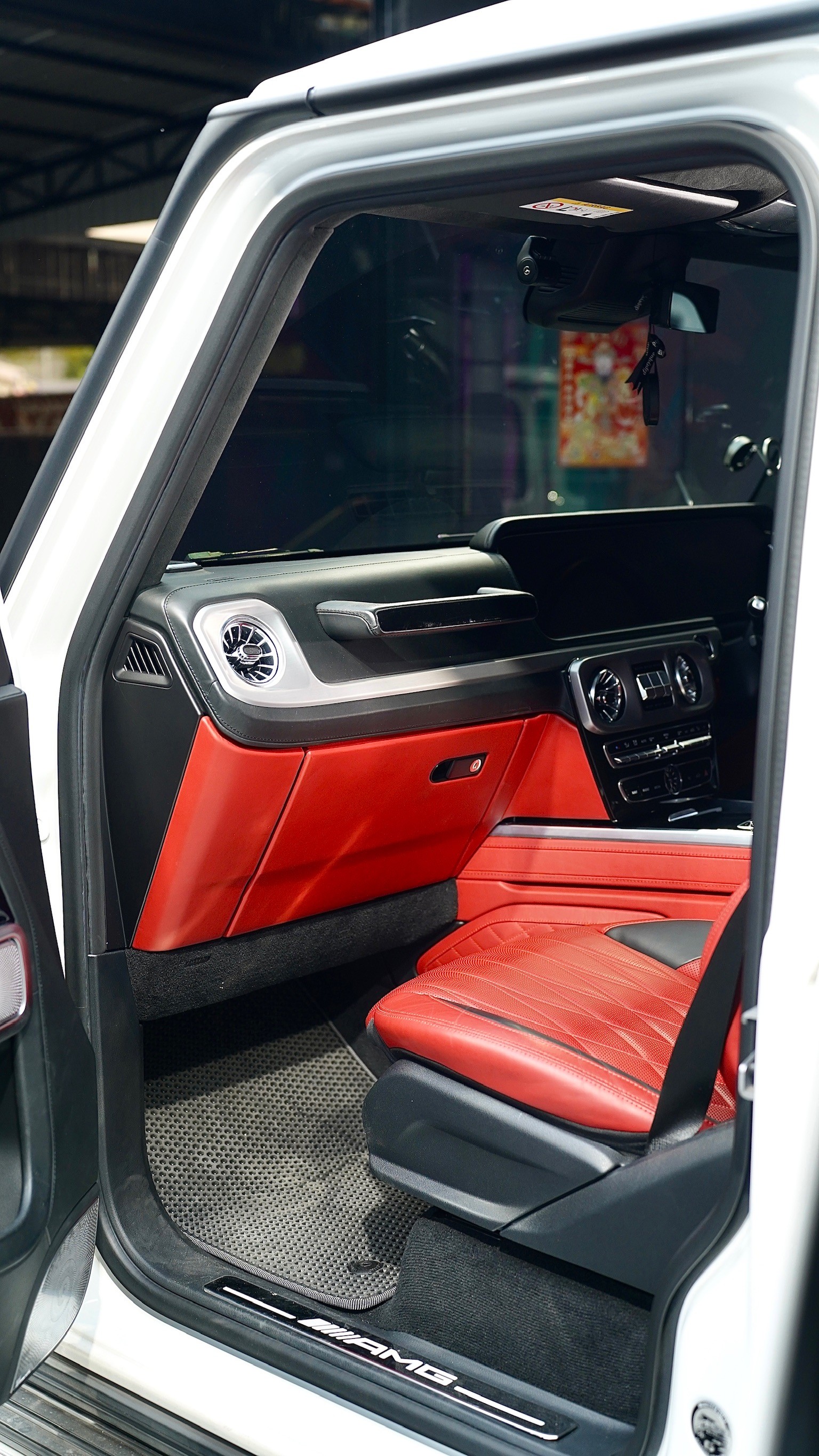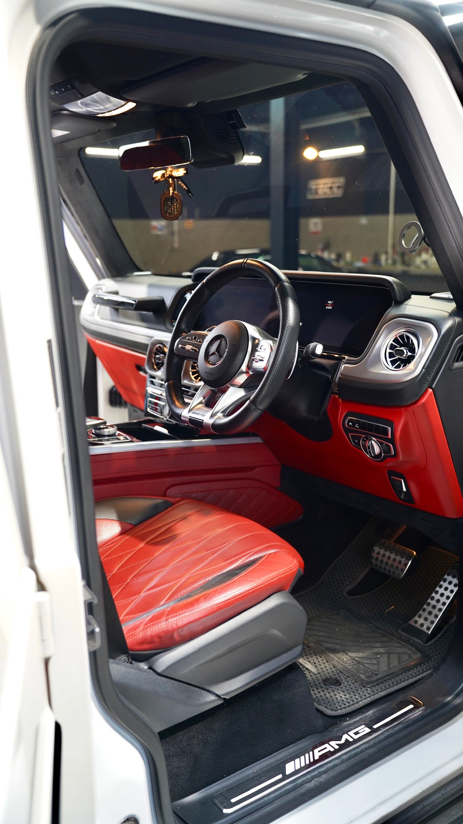 The G63 AMG is built for adventure, but its interior is pure luxury. From the diamond-stitched seats to the carbon fiber accents and that signature grab handle, every surface demands respect.