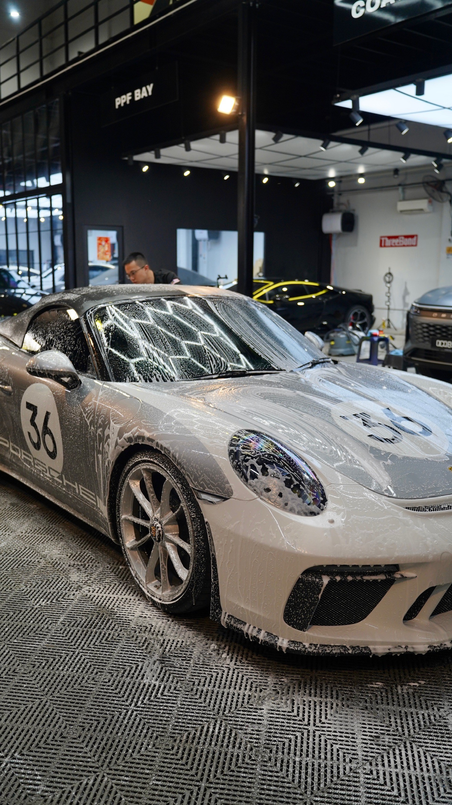 A comprehensive bespoke package for this Porsche 911 Speedster: Full Paint Protection Film (PPF) installation, meticulous tan interior detailing, and a custom number change from "39" to "36" on the hood and doors.